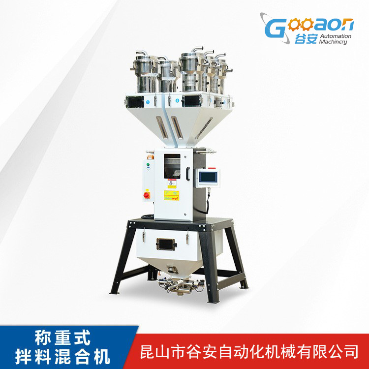 在擠吹工藝中,主原料、色母料和回收料通過秤重式混料機,按比例添加。谷安的秤重式拌料混合機的產量范圍為40~3000kg/hr,計量組分從2到8組分不等。 配備乙太網接口,使用軟件通過此端口上傳已生產的混料配比數據,便于生產品質控制;同時可以通過此端口實現與機臺的集中監(jiān)控(基于MODBUS-TCP/IP協(xié)議)。
