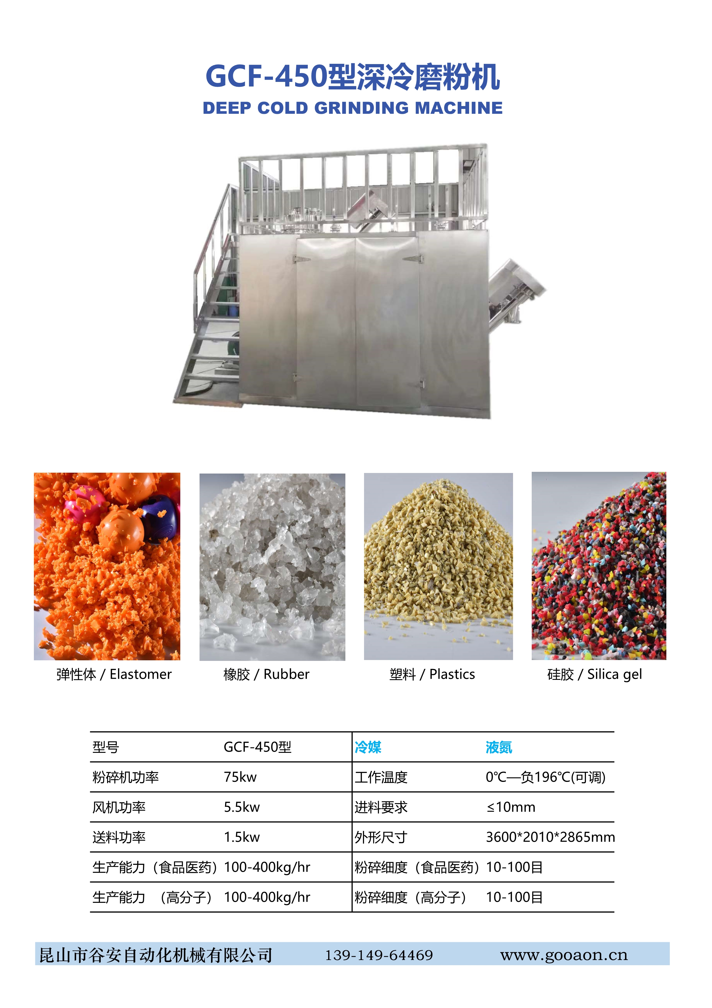 該超冷粉碎機系統使用于在常溫下無法粉碎的各種物料,廣泛應用于各種化工、石化、機械、船舶、汽車行業、電子行業、服裝、涂料、印刷、工程塑料、橡膠、熱塑性物料、熱熔膠、尼龍、聚酯、聚丙烯、聚乙烯、食品行業(辣椒粉)、中西藥材等等產品的超細粉碎。