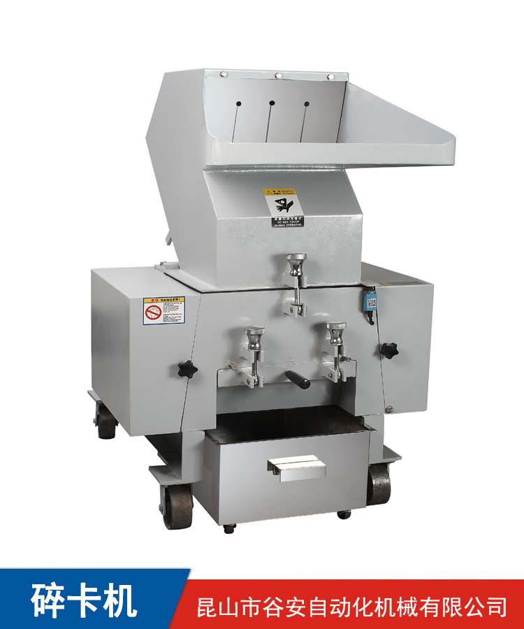 2.獨特的切削角度設計,使得本系列粉碎機即可粉碎塑料卡,金屬芯片,同時還可粉碎卡片外的包裝紙和包裝薄膜,且粉碎效率高.